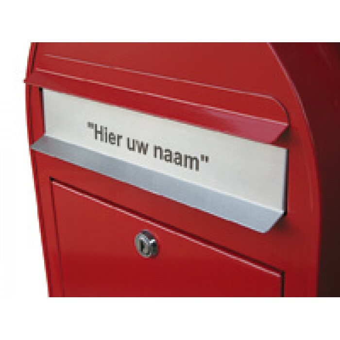 Op de inox inwerpklep van een Bobi brievenbus kan een tekst gegraveerd worden, bijvoorbeeld een huisnummer, naam of bedrijfslogo. De tekst is altijd zwart.