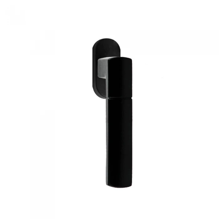 Een draaikiep raamkruk in RVS met een zwarte poedercoating van hoogwaardige kwaliteit.