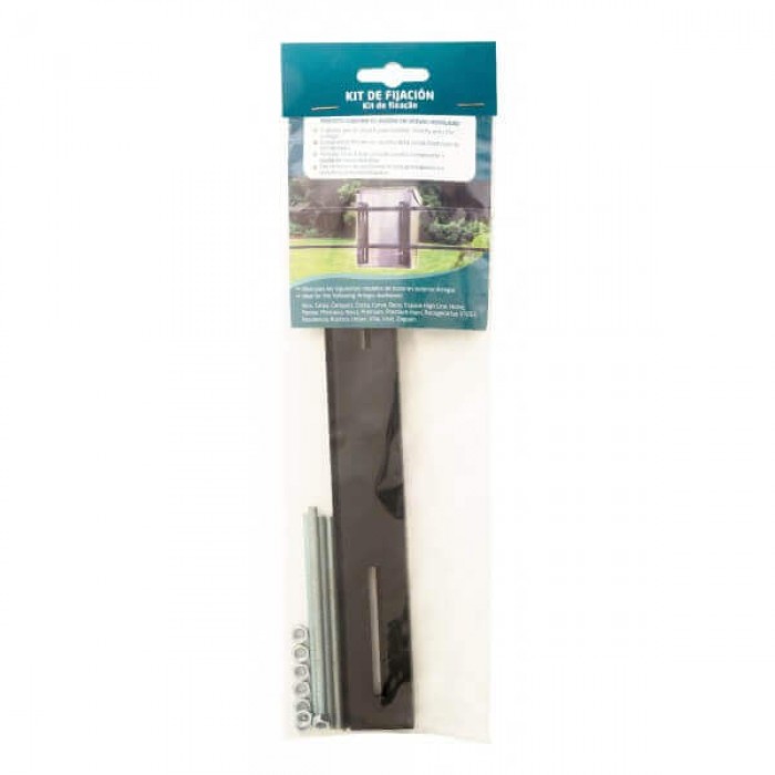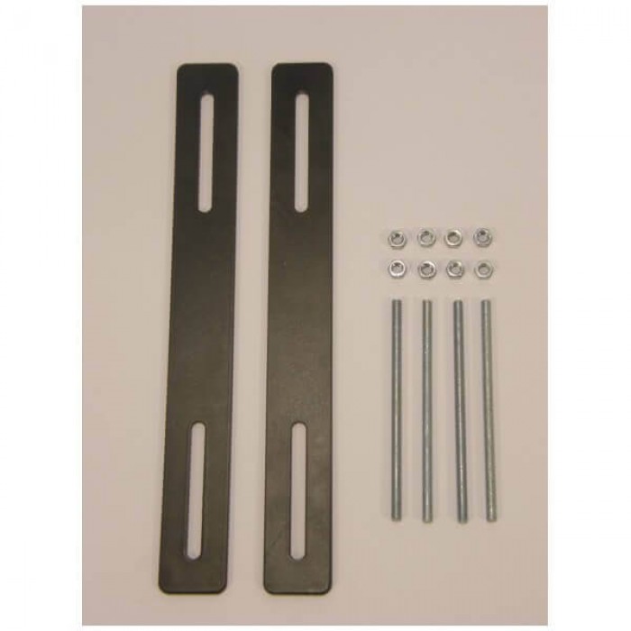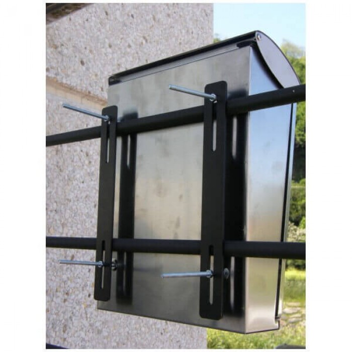 Een set bestaande uit twee stalen platen die zwart gepoedercoat zijn, bouten en moeren.Deze set werkt samen met al Allux brievenbussen