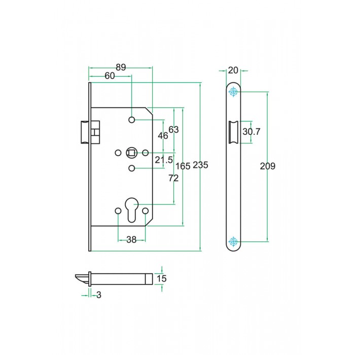 Afmetingen slotkast >Hoogte165 mm inbouwdiepte 89 mm.