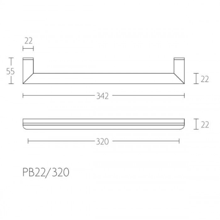 Hart op hart maat: 320mm. Totale lengte 342mm.