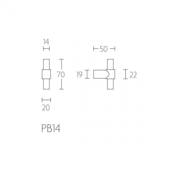Totale lengte 70mm en knop 14mm dik.