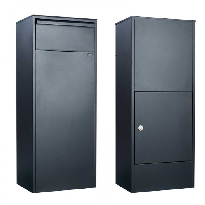Deze postzuil bevat een grote boveninworp en daarmee kunnen pakketten ontvangen worden tot een formaat van 115x330x300mm.