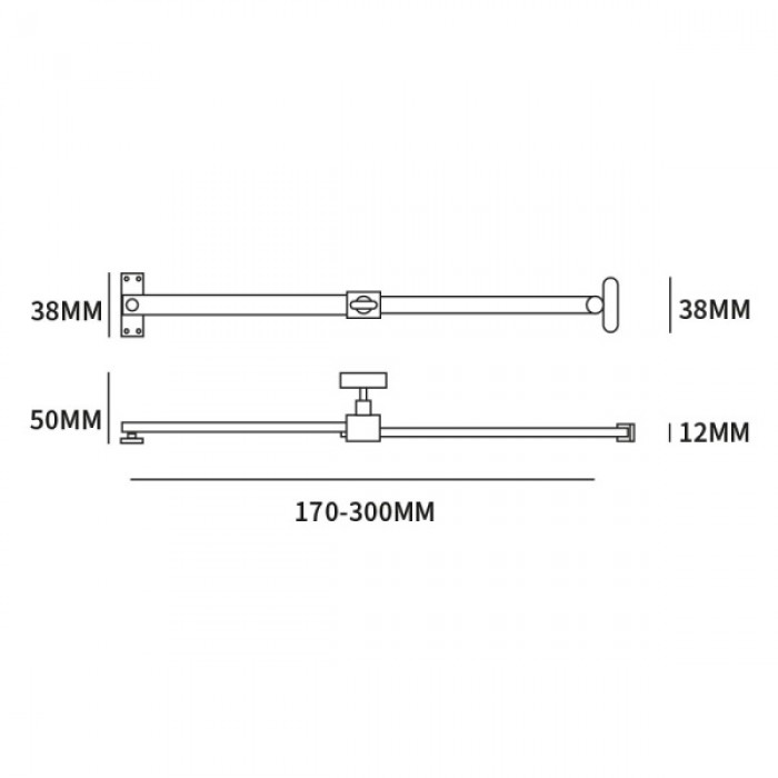 Een telescopische raamuitzetter van 170mm tot 300mm.