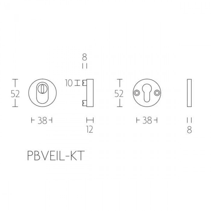 Veiligheidscilinderrozet Piet Boon PBVEIL-KT mat RVS of PVD mat goud