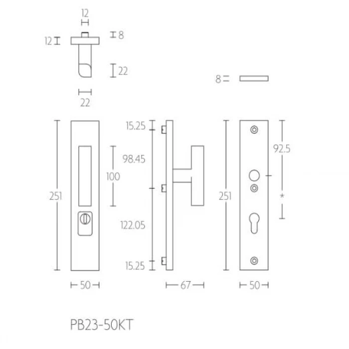 Schild 251x50mmm. U kunt het gewenste type kruk voor de binnenzijde (gatdeel) bijbestellen.